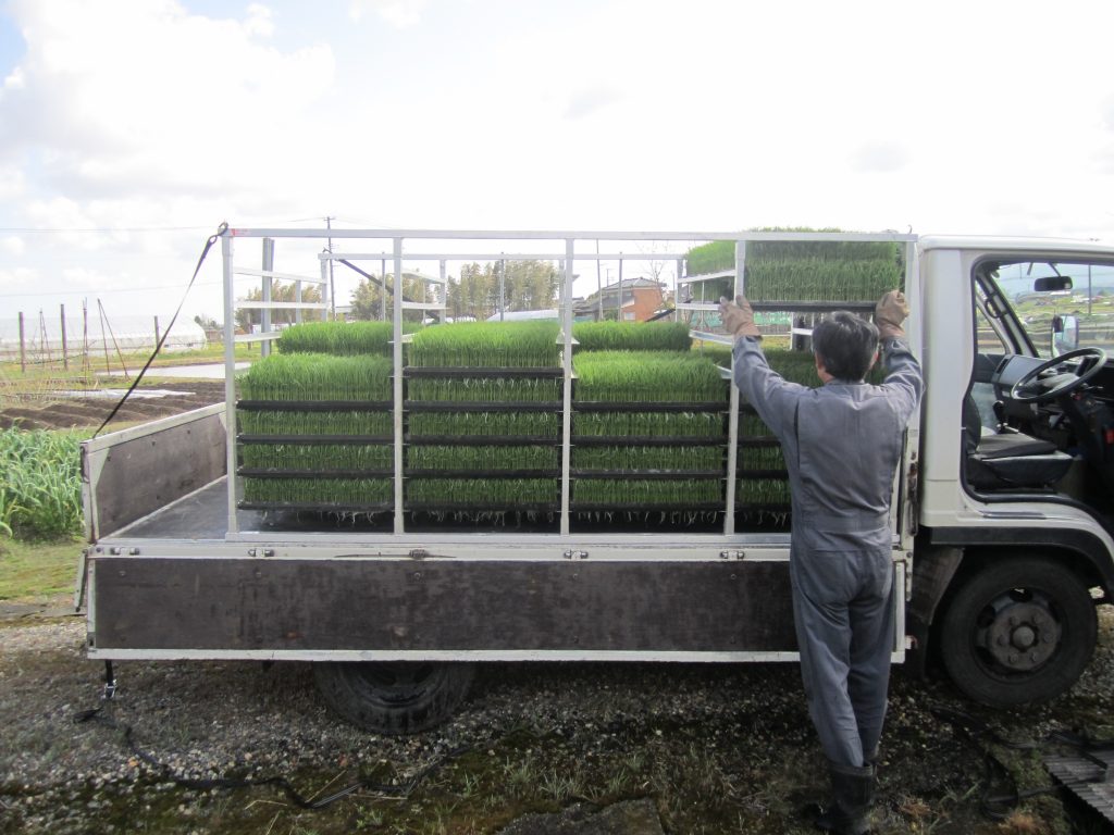 水稲苗の配達 本日、新潟 下越地区は絶好の田植え日和です。(気温16度 晴天)朝... -