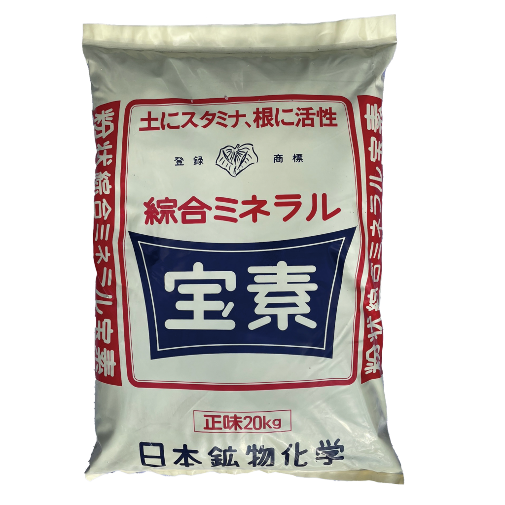 綜合ミネラル宝素は、農林水産省が公表する有機JAS資材リストに登録された、天然由来の土壌改良資材です。